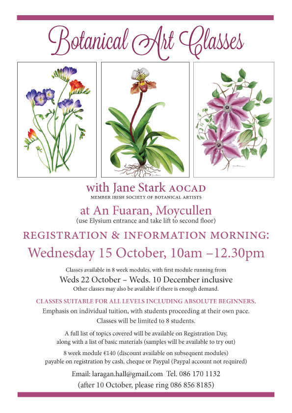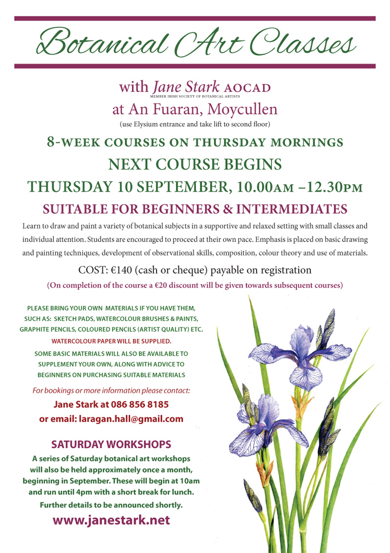 The standard of work in the exhibition is very high – with a wonderful variety of styles and media. The exhibition is divided between two rooms, with the larger focusing on botanical art illustration – ‘the area in which art and science meet’ – with the work of artists Grania Langrishe, Yanny Petter, Susan Sex, Sabine Springer, Lynne Stringer and myself. The other room featured the much-admired pastel artwork of Gordon D’Arcy and the stunning tree ‘portraits’ of Anne Towers, both of whom are residents of the west of Ireland. The entire exhibition is, we believe, is a new departure for Galway, where one seldom has the opportunity to view an exhibition devoted to botanical art. Hopefully this will start a new tradition, with the Botanical Art Expo becoming a regular feature of the annual Galway Garden Festival.